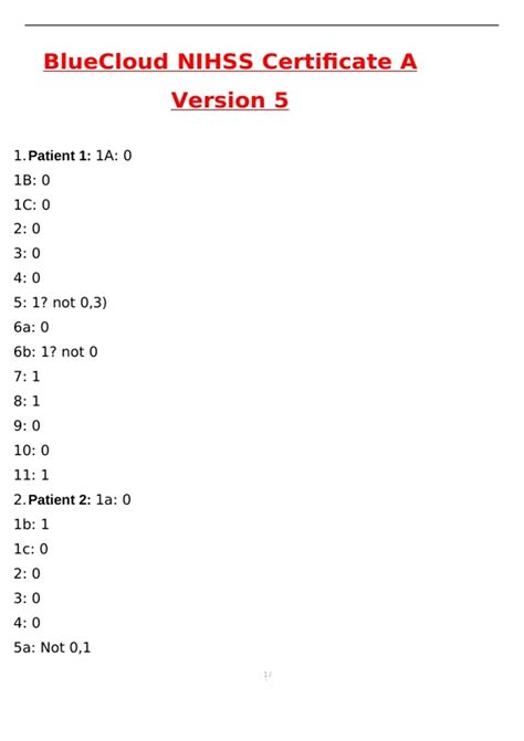 Before delving into the intricacies of Blue Cloud NIHSS answers, it's crucial to grasp the fundamentals of the National Institutes of Health Stroke Scale (NIHSS). Developed as a standardized tool for evaluating the severity of stroke-related neurological deficits, the NIHSS encompasses various domains, including consciousness, vision, sensation, language, and motor function. This comprehensive assessment aids healthcare professionals in promptly diagnosing strokes and determining appropriate treatment strategies.[1]